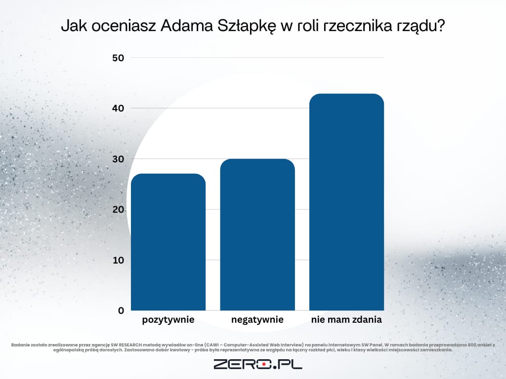 Polacy zapytani o to, jak oceniają pracę rzecznika rządu, w większości odpowiedzieli, że nie mają na ten temat zdania. Z sondażu wynika, że Adam Szłapka ma najsilniejsze wsparcie wśród seniorów oraz mieszkańców największych miast.
