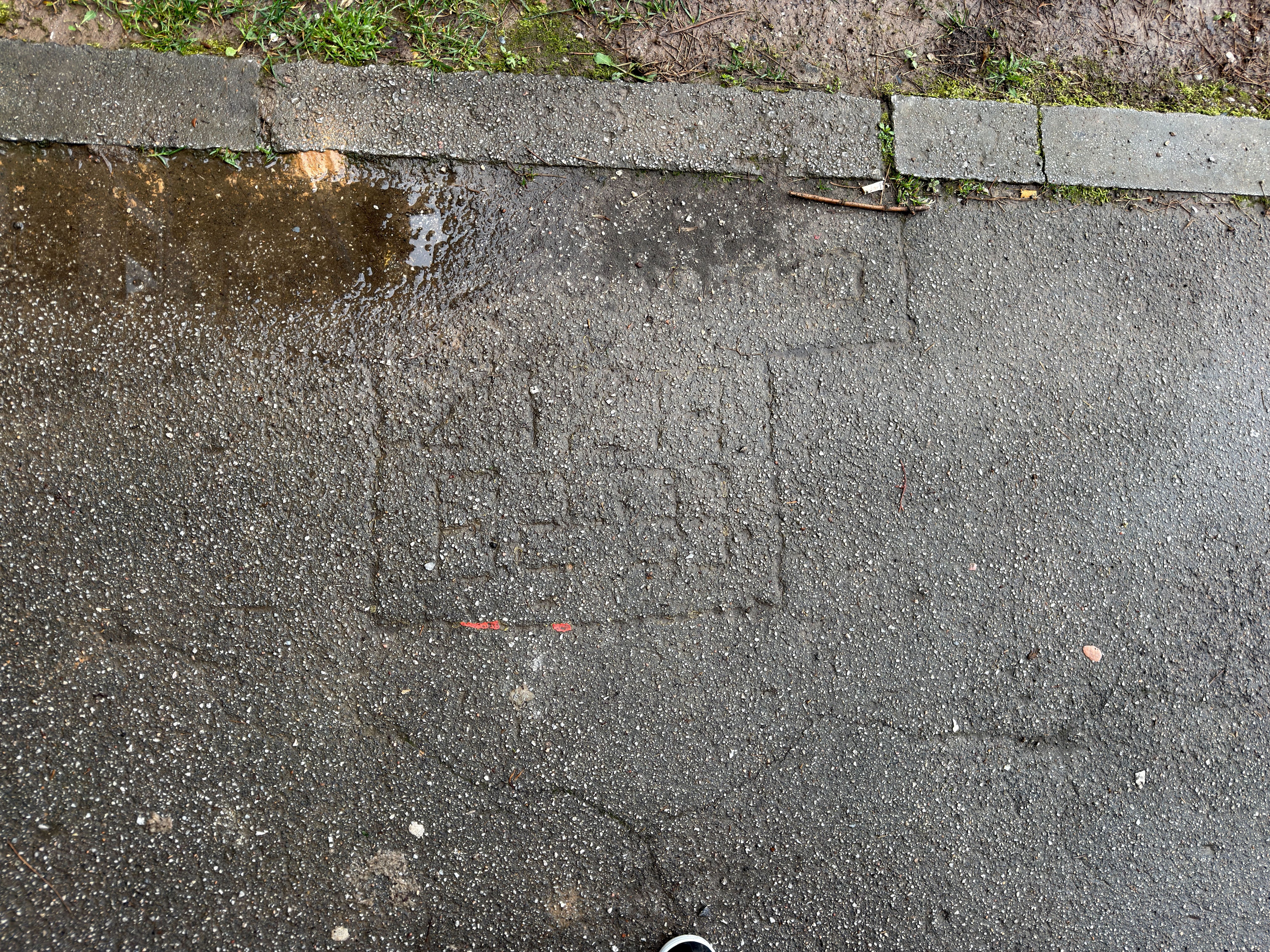 Przechodzimy między budynkami. Nagle Damir zatrzymuje mnie i wskazuje niemal niewidoczne już imię i nazwisko chłopca wyżłobione w asfalcie.