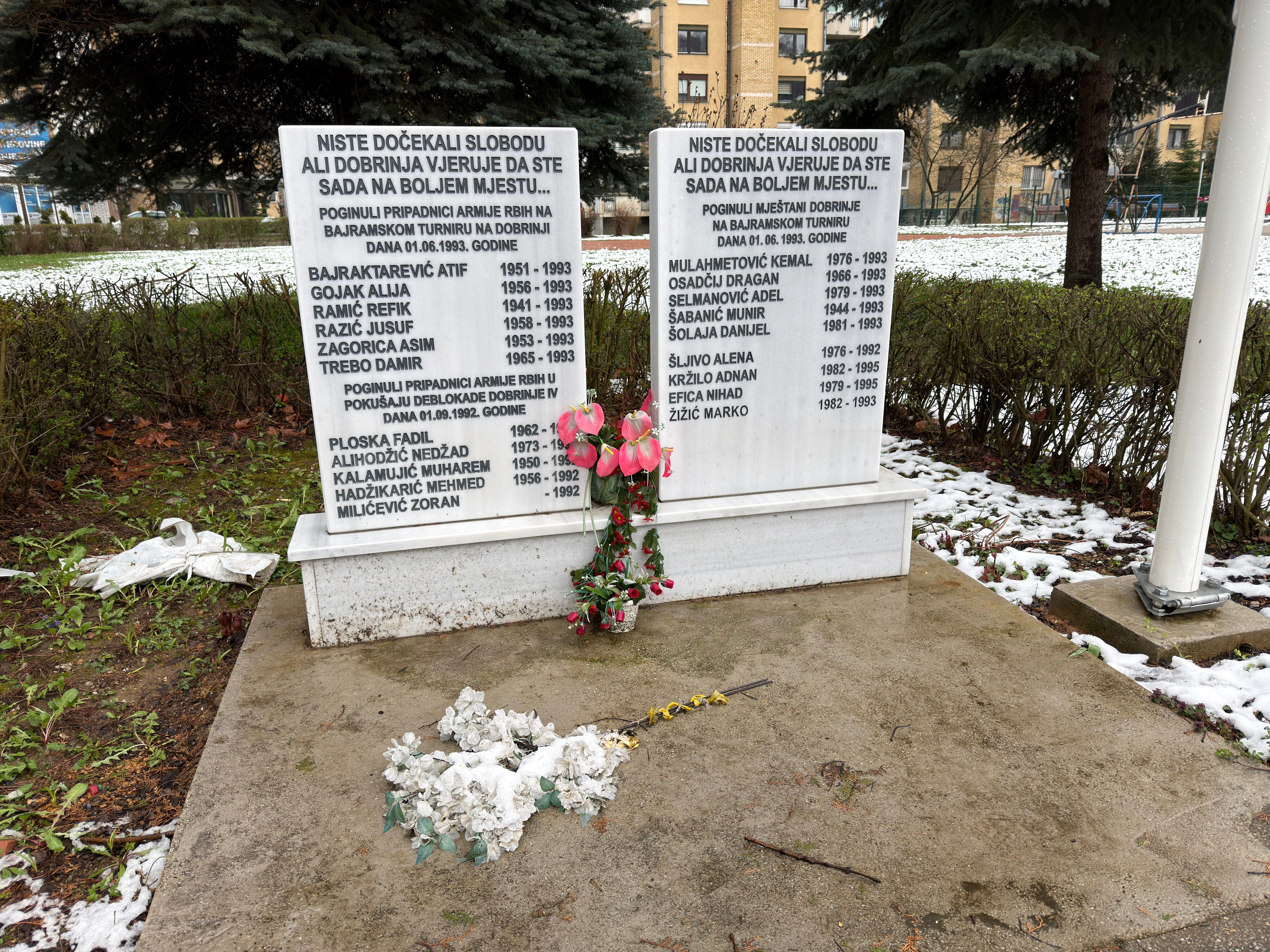 „Nie doczekaliście wolności, ale Dobrinja wierzy, że jesteście teraz w lepszym miejscu” – napisano na niewielkiej tablicy upamiętniającej ofiary.