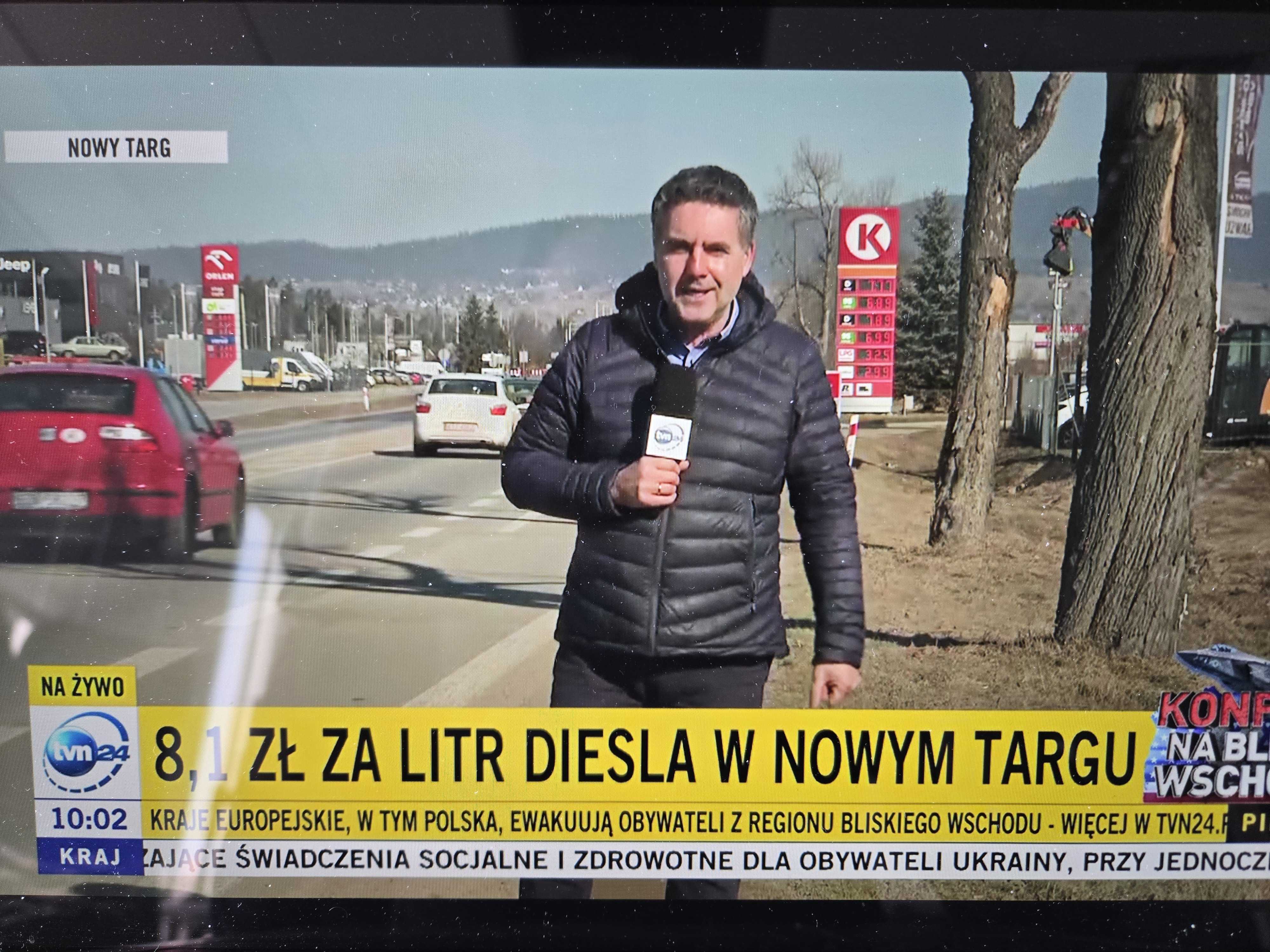 Do interesującej sytuacji doszło na antenie stacji TVN24. Ekipa telewizji udała się do Nowego Targu. Na pasku pojawił się złowrogi tytuł: „8,1 zł za litr Diesla w Nowym Targu”. Podczas wypowiedzi reportera na widocznym w tle pylonie wyświetlana cena oleju napędowego się zmieniła na 7,77 zł, co wprowadziło reportera TVN24 w zdziwienie.