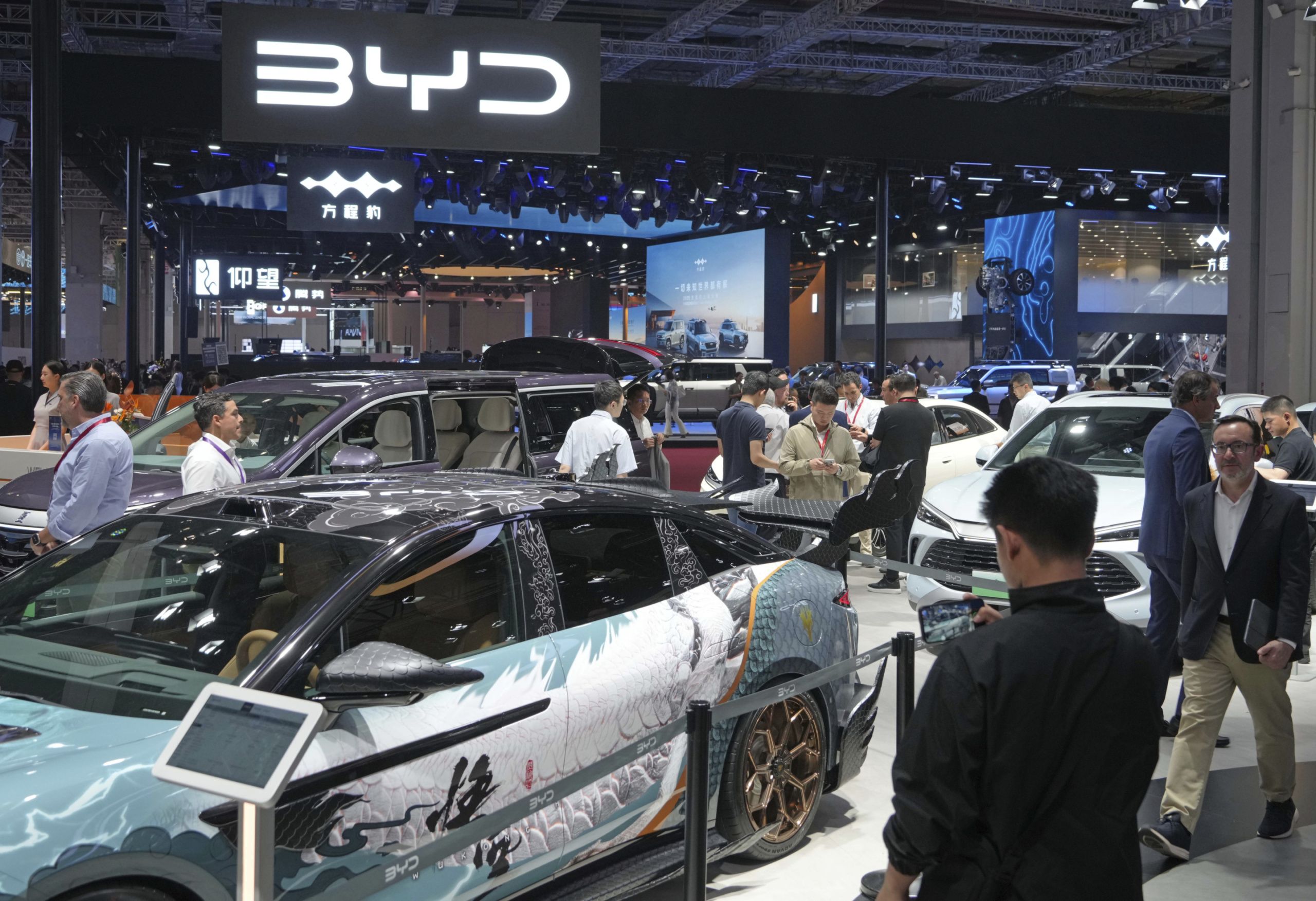 Stoisko BYD na targach motoryzacyjnych w Szanghaju. / Fot. Yomiuri Shimbun/Associated Press/East News