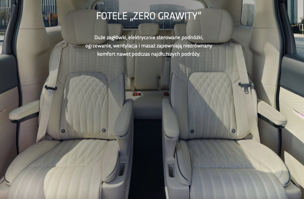 Oczywiście ta funkcja jest również sterowana pilotem z zewnątrz. Można kazać temu samochodowi zaparkować samemu i wysiąść, a reszta zrobi się sama. Denza N9 może mieć drona zamontowanego w dachu. Voyah stawia na specjalne fotele Zero Gravity dostosowujące się do ciała, z podgrzewaniem, wentylacją, masażem i elektryczne rozsuwanymi podnóżkami.