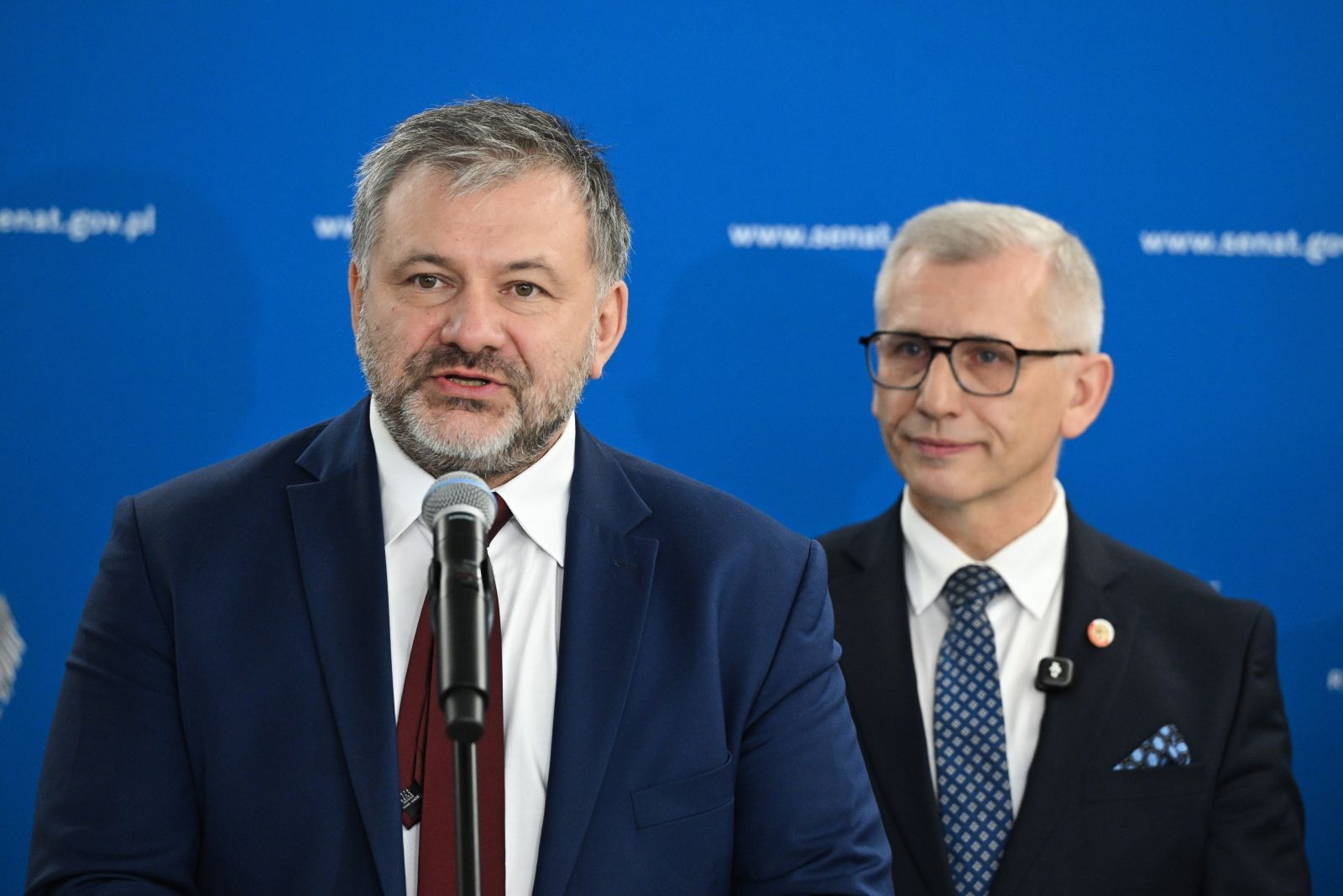 Warszawa, 01.04.2026. Przewodniczący zespołu, minister sprawiedliwości Waldemar Żurek (L) i senator Krzysztof Kwiatkowski (P) podczas konferencji prasowej przed posiedzeniem Senackiego Zespołu ds. Zrównoważonego Rozwoju, 1 bm. w Warszawie. Posiedzenie odbędzie się pod nazwą: "Standardy w obronie godności. Systemowy model postępowania służb publicznych wobec osób z niepełnosprawnością niewidoczną i neuroróżnorodnością". (ad) PAP/Radek Pietruszka (fot. Radek Pietruszka / PAP)