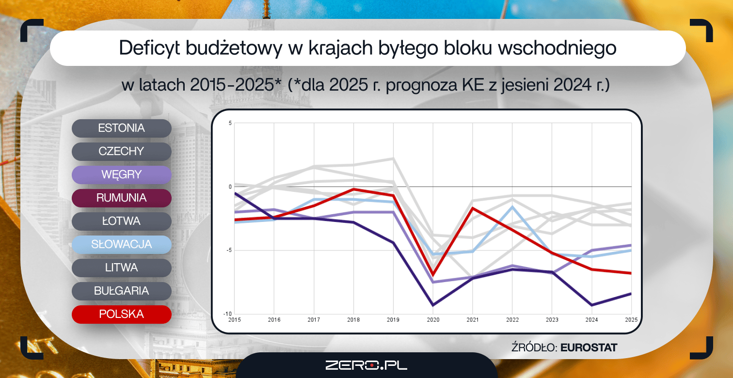 Makroekonomiczne dane wskazują więc na zaskakująco dobrą kondycję naszej gospodarki na tle państw regionu. Jest jednak bardzo poważny problem – sytuacja budżetowa. To między innymi dzięki wysokiemu deficytowi Polska może utrzymywać tak wysokie tempo wzrostu. Dług to cenne narzędzie, które warto, a nawet należy wykorzystywać w czasach gorszej koniunktury oraz gdy potrzebne są np. duże fundusze na zbrojenia. Polski deficyt budżetowy należy jednak do największych w UE. W 2025 r. większy był jedynie w Rumunii. Międzynarodowe agencje ratingowe alarmują – Polska potrzebuje planu na zasypanie dziury budżetowej.