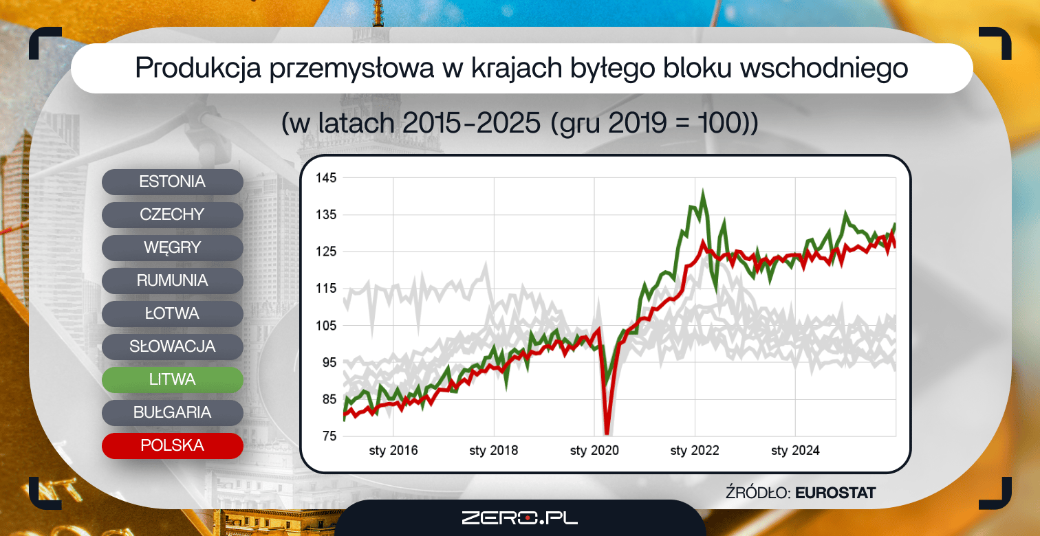 Doskonały wzrost PKB oraz świetne odczyty z rynku pracy to nie wszystko. Naszą gospodarkę napędza dziś m.in. produkcja przemysłowa. W Polsce i na Litwie wzrosła ona o ok. 25-30 proc. Inne państwa regionu nawet nie zbliżyły się do tego wyniku. Na Łotwie odnotowano wzrost o 8 proc. W Czechach jest na tym samym poziomie, a Estonia, Słowacja, Rumunia, Węgry i Bułgaria odnotowały spadek.