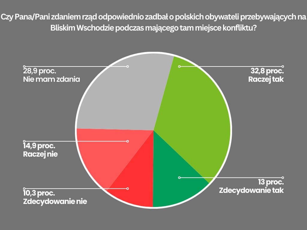 Na pytanie „Czy Pana/Pani zdaniem rząd odpowiednio zadbał o polskich obywateli przebywających na Bliskim Wschodzie podczas mającego tam miejsce konfliktu?” ankietowani odpowiedzieli w następujący sposób: