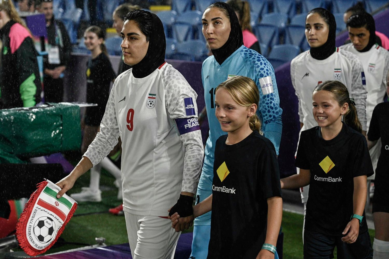 Problemy piłkarek rozpoczęły się tuż przed ich inauguracyjnym spotkaniem z Koreą Południową. Iranki, w geście protestu przeciwko islamskiemu reżimowi, odmówiły zaśpiewania hymnu narodowego. Sytuacja miała miejsce zaledwie dwa dni po śmierci irańskiego przywódcy Aliego Chameneiego, który zginął w wyniku amerykańsko-izraelskich nalotów.