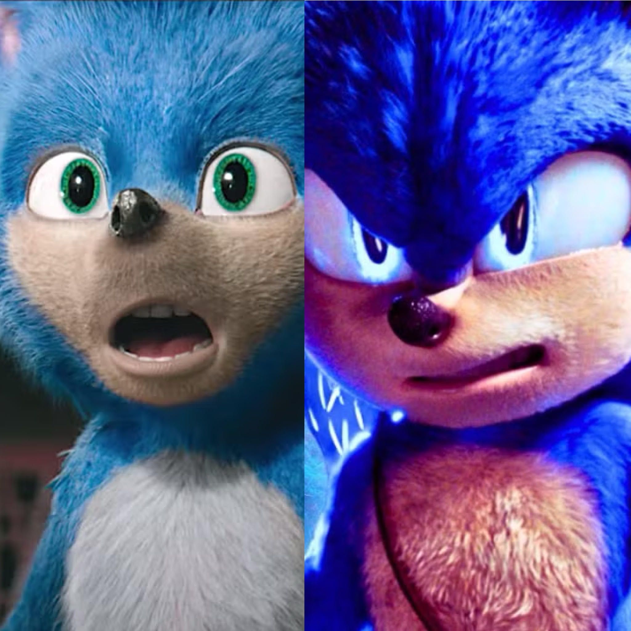 Jeż Sonic przed i po swojej swojej operacji plastycznej. Kadry ze zwiastunów filmu „Sonic: Szybki jak błyskawica”, reż. Jeff Fowler, 2020 (fot. materiały prasowe)