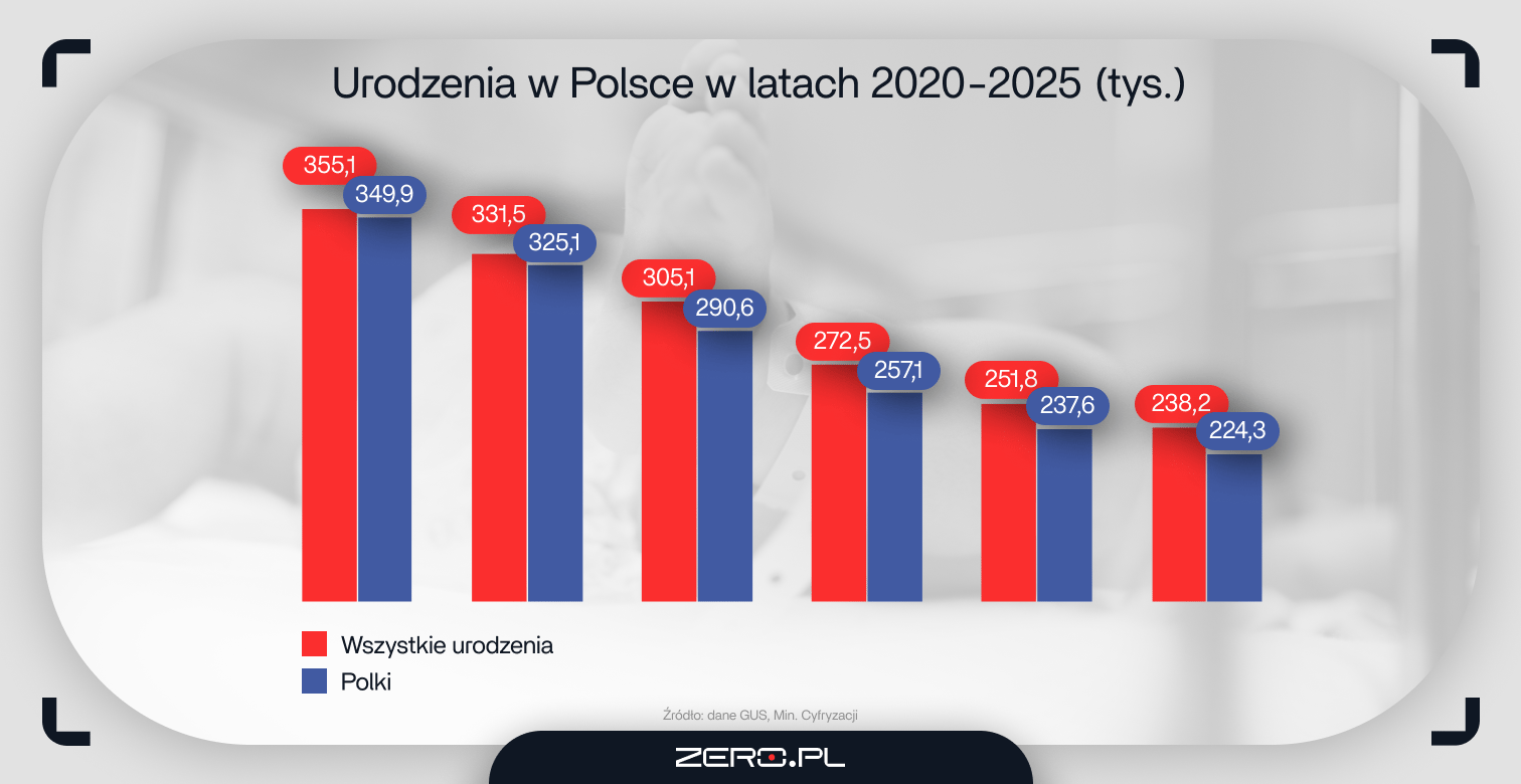 - Polki urodziły w 2025 r. o ponad 40 proc. mniej dzieci niż w 2017 r.
