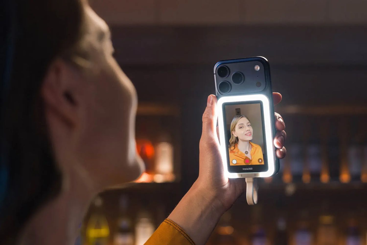 Wynika to z tego, że Insta360 Snap jest dostępny w dwóch wariantach. Klasycznym oraz ze światłem, czyli paskiem LED umieszczonym wokół ekranu, który oferuje trzy kolory temperatury świecenia oraz pięć poziomów jasności.