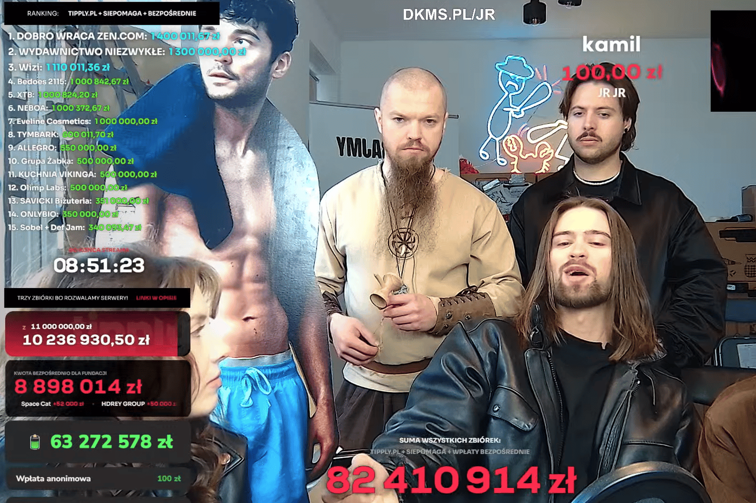 - Transmisja przebiła rekord świata w zbieraniu pieniędzy na cele charytatywne podczas jednego streamu. W niedzielny poranek wynosi ona już ponad 80 mln zł.