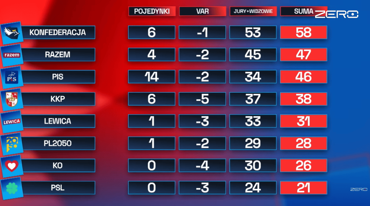 Jacek Prusinowski, Igor Zalewski, Bartosz Michalski oraz Jakub Podgajnik podsumowali czwartą edycję Ligi Debat. Publicyści ocenili najpierw ocenili najmocniejsze pojedynki polityczne, następnie przypomnieli polityczne VAR-y, a na końcu przyznali oceny indywidualne. Po zsumowaniu wszystkich wyników doszło do przetasowania w klasyfikacji generalnej.
