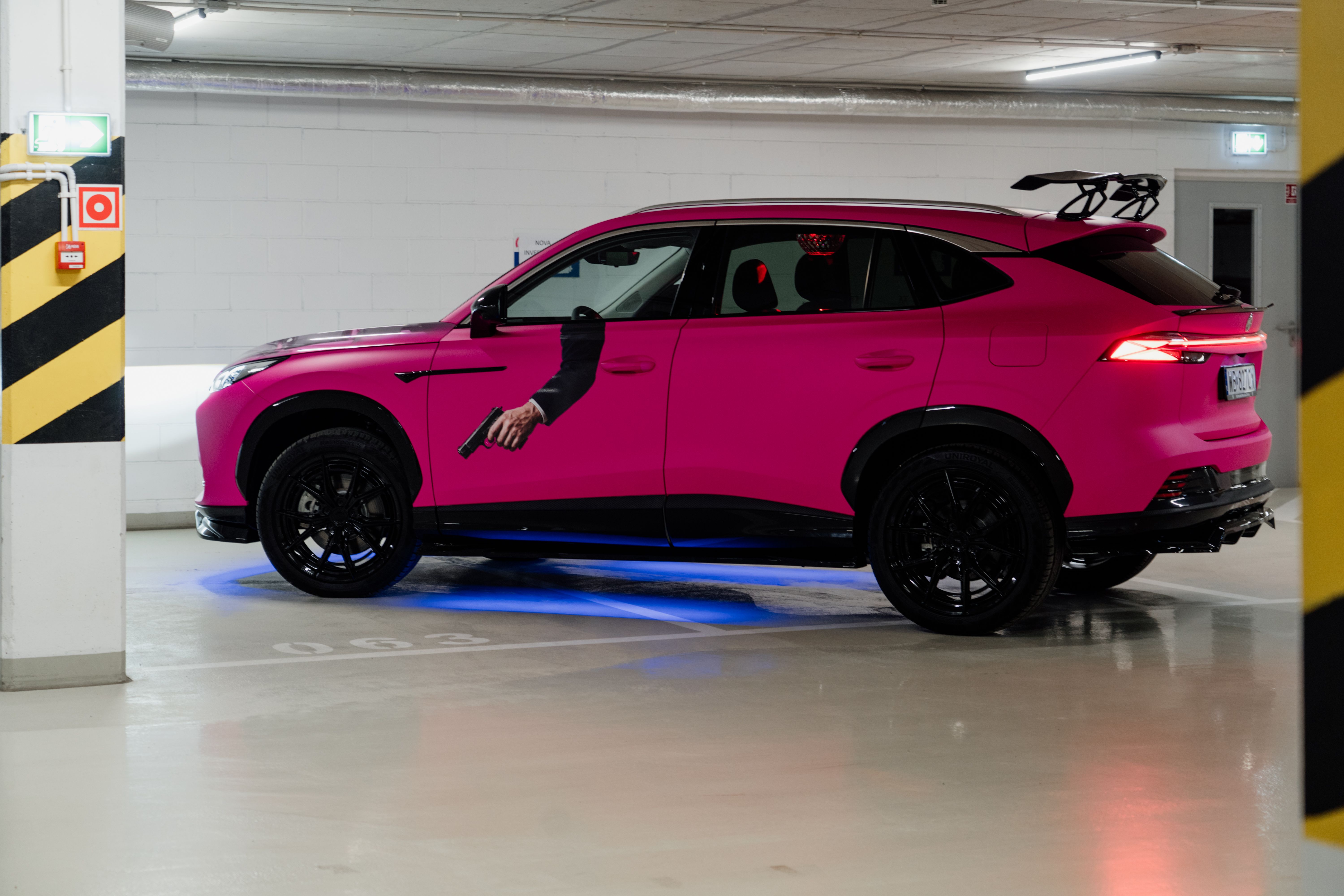 Jak w ogóle doszło do tego, że po Warszawie grasuje wściekle różowy chiński SUV z gigantycznym spojlerem zamontowanym na dachu? To pomysł wspomnianych już Tedego i WuWunia, którzy razem z naszym partnerem – firmą Vehis – wzięli na warsztat rzeczonego SUV-a.