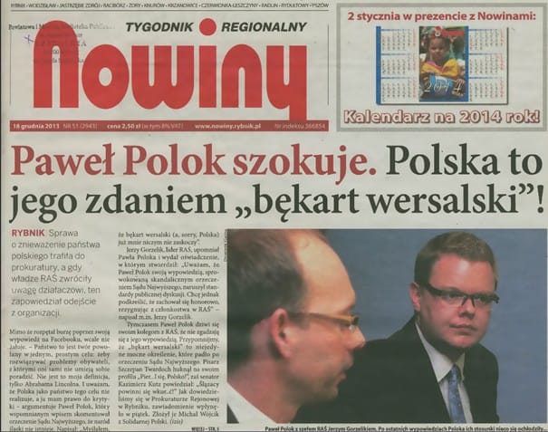 5 grudnia 2013 r. Sąd Najwyższy orzekł, że narodowość śląska nie istnieje i tym samym nie można zarejestrować Stowarzyszenia Osób Narodowości Śląskiej. Paweł Polok, wówczas szef RAŚ w Rybniku decyzję skomentował w internecie: