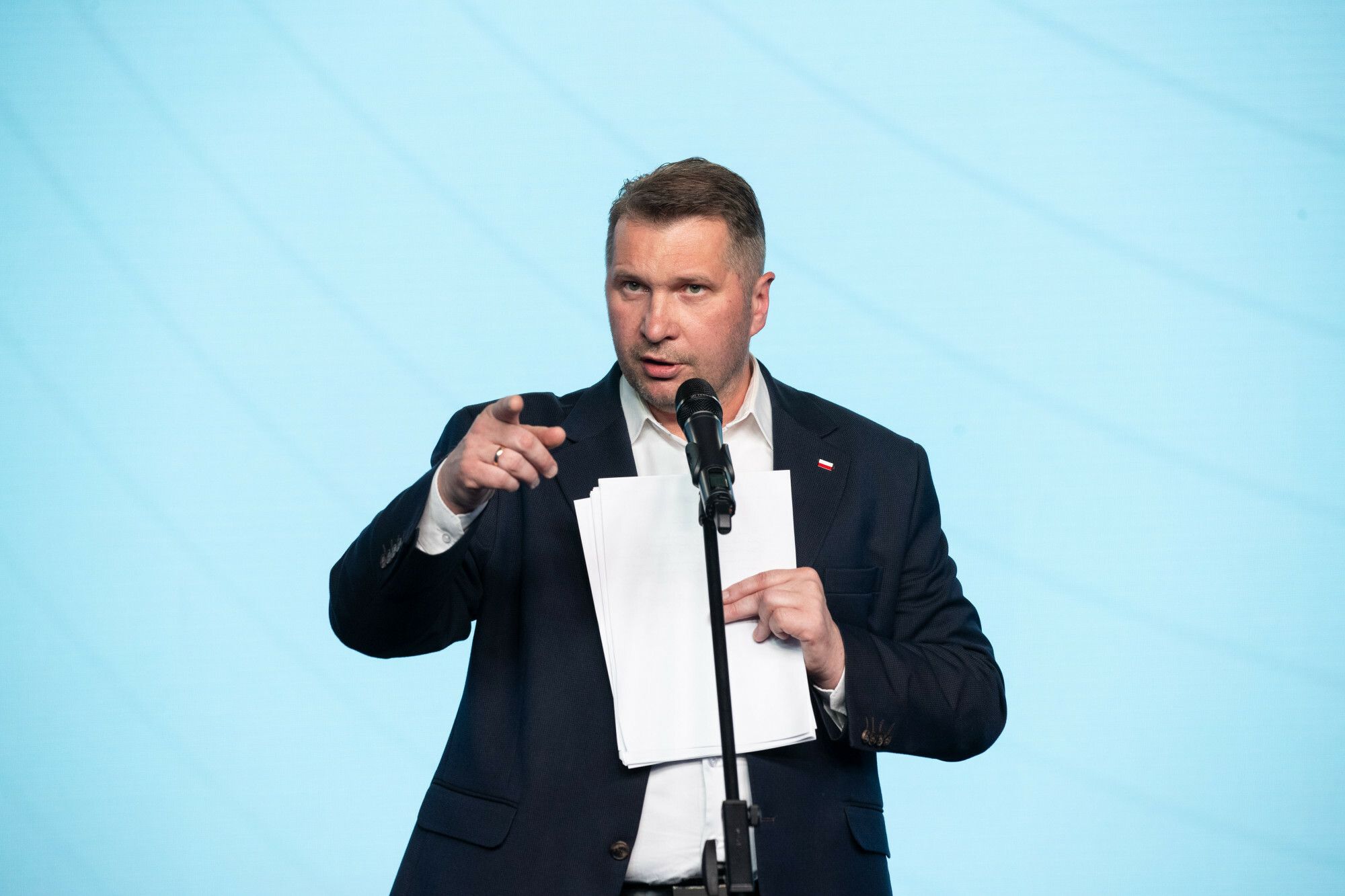Poseł Przemysław Czarnek na konferencji, podczas której ujawnił dane osobowe Jerzego Ż. (fot. Tomasz Jedrzejowski/REPORTER / East News/Reporter)