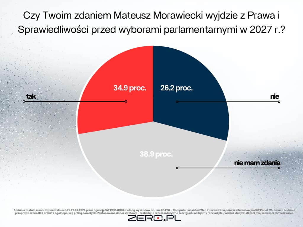 - Sondaż dla Zero.pl wskazuje, że 34,9 proc. Polaków przewiduje odejście Mateusza Morawieckiego z partii jeszcze przed przyszłorocznymi wyborami parlamentarnymi.