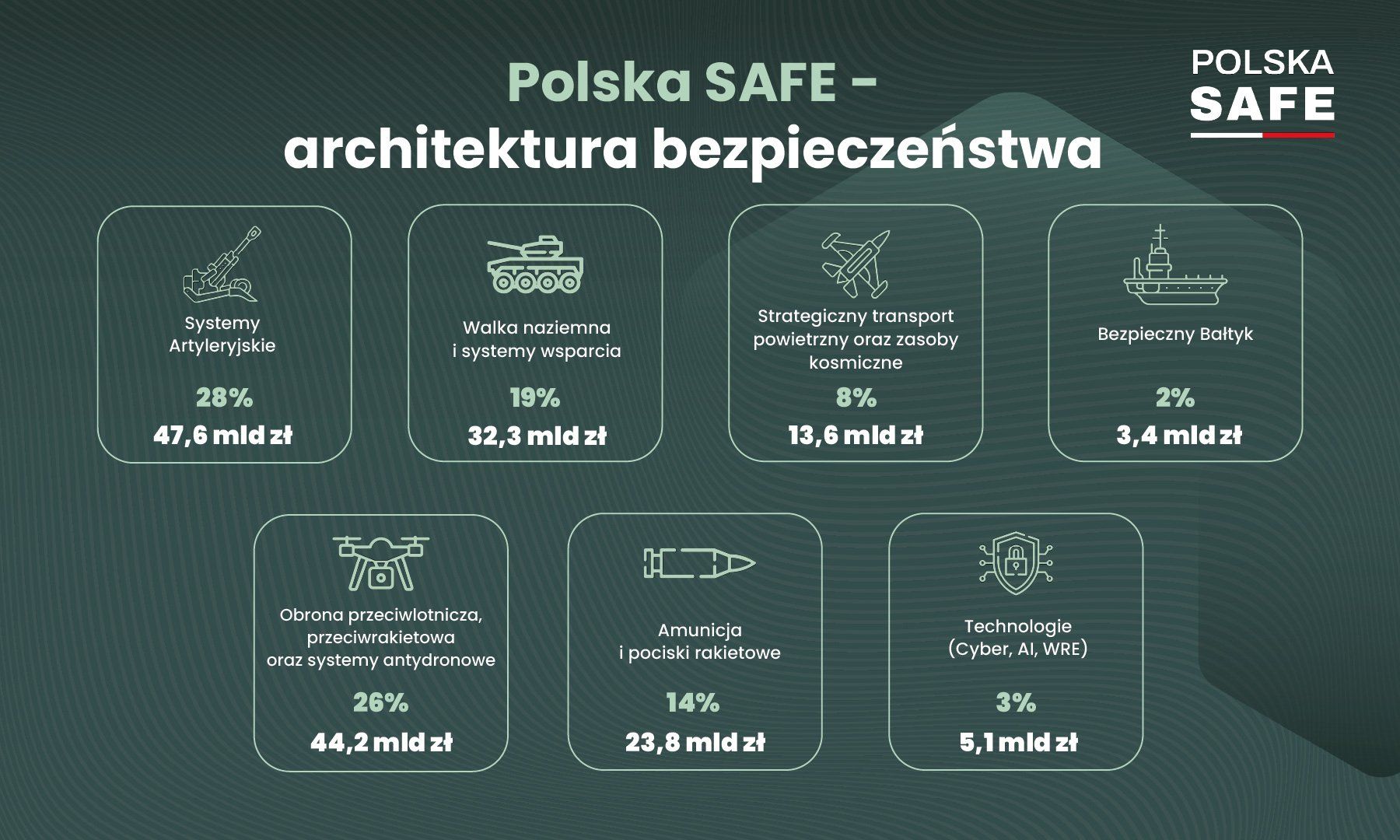 - W ramach programu SAFE Polska ma wydać na bezpieczeństwo do 43,7 mld euro.