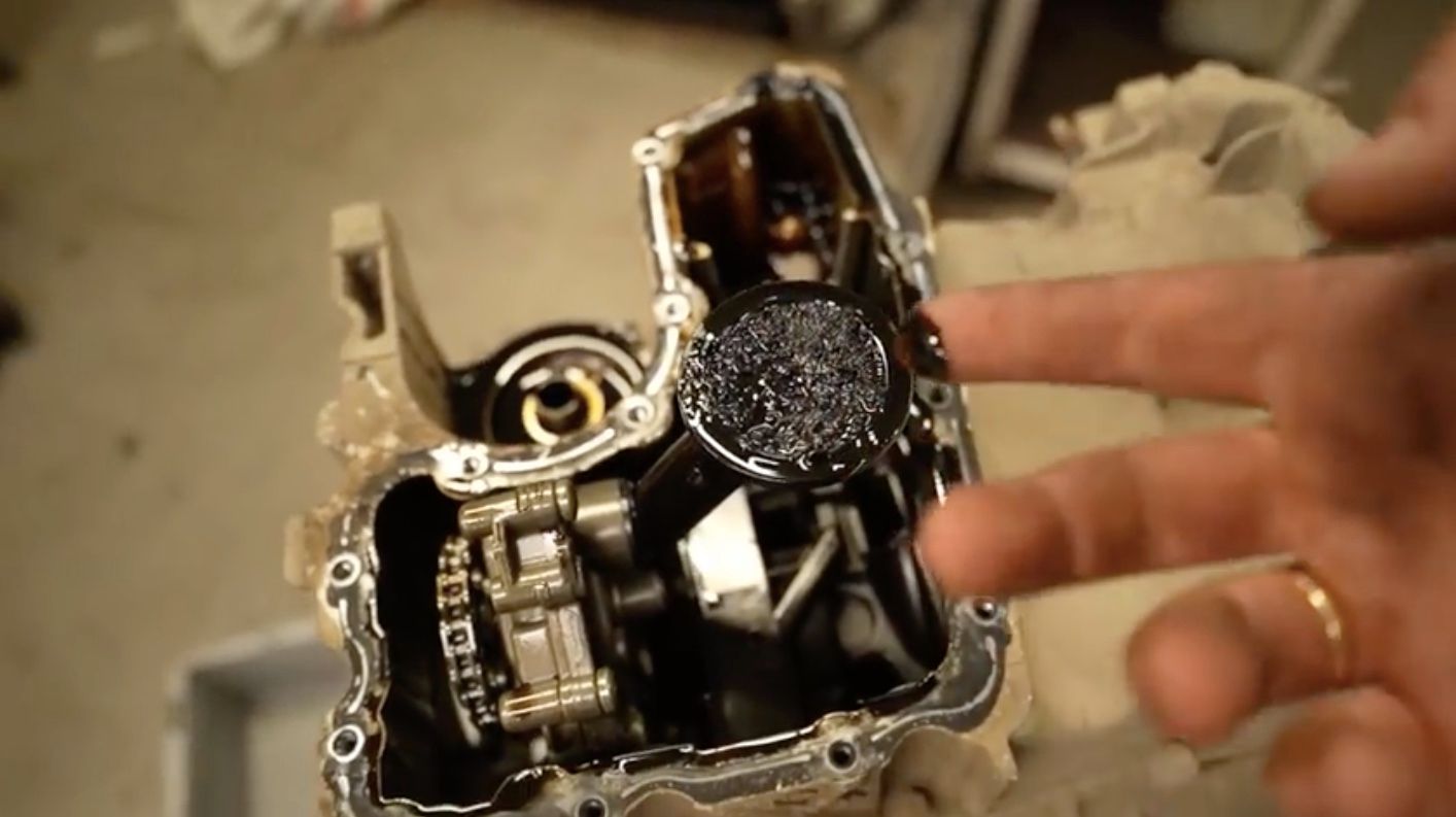 Zatkana pompa oleju w 1.2 Puretech. Zdjęcie z filmu na Youtube - prof. Chris
