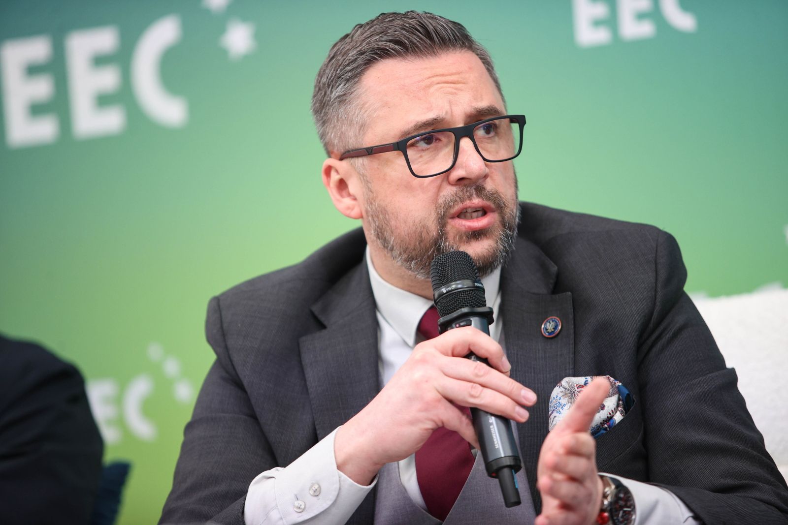 Katowice, 22.04.2026. Minister nauki i szkolnictwa wyższego Marcin Kulasek w dyskusji "Green Planet 2" w ramach Europejskiego Kongresu Gospodarczego w Katowicach, 22 bm. XVIII EKG odbywa się pod hasłem „The Power of Dialogue. Siła dialogu”. (amb) PAP/Jarek Praszkiewicz (fot. Jarek Praszkiewicz)