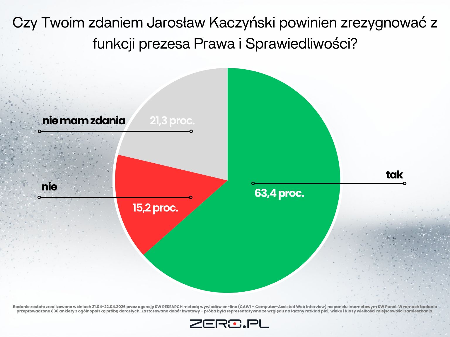 Ponad 63 proc. Polaków uważa, że Jarosław Kaczyński powinien zrezygnować z funkcji prezesa Prawa i Sprawiedliwości i przekazać stery partii następcy. Tak wynika z najnowszego sondażu SW Research dla Zero.pl przeprowadzonego w czasie, gdy PiS zmaga się z wewnętrznymi napięciami.