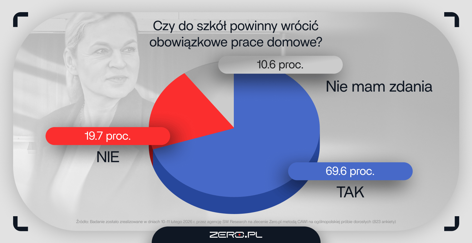 Rozwój sztucznej inteligencji miał być argumentem przeciw pracom domowym, ale Polacy myślą inaczej. Najnowszy sondaż SW Research dla Zero.pl pokazuje wyraźne poparcie dla ich powrotu. Ten rozdźwięk ostro komentuje poseł Marcin Józefaciuk: – To był po prostu idiotyzm ze strony minister Barbary Nowackiej – mówi odnosząc się do narracji resortu.