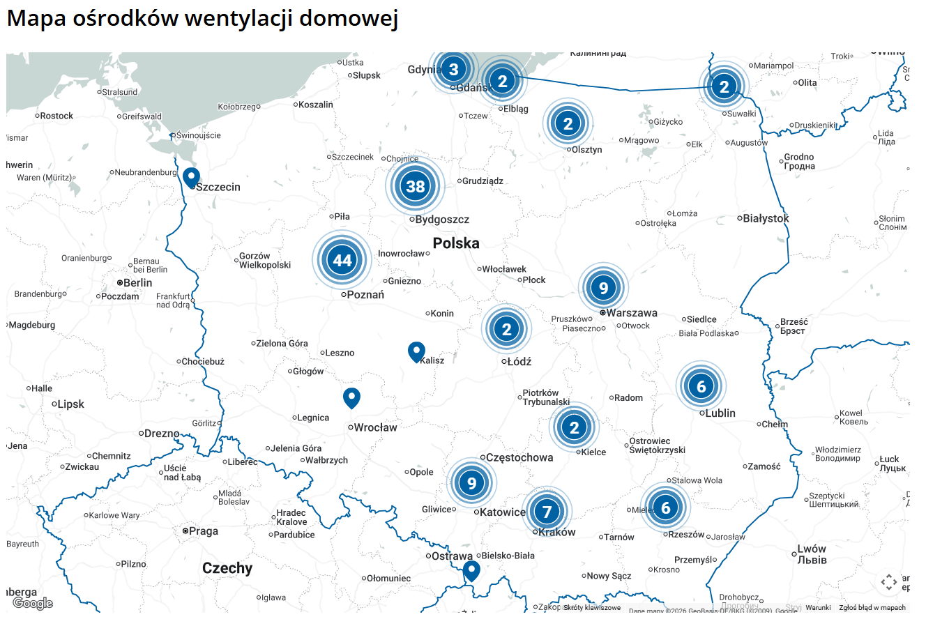 Częścią wyjaśnienia jest geografia. W całym kraju działa 136 placówek medycznych organizujących wentylację domową. Mniej więcej połowa z nich należy do OZŚWM i od dwóch miesięcy wstrzymuje przyjęcia. Firmy zajmujące się terapią nie są rozmieszczone równomiernie na mapie. W niektórych regionach może to znacząco utrudniać znalezienie miejsca dla nowych chorych. Konsultanci mogą też nie wiedzieć o przypadkach pacjentów, których odsyła się do domu bez pomocy.