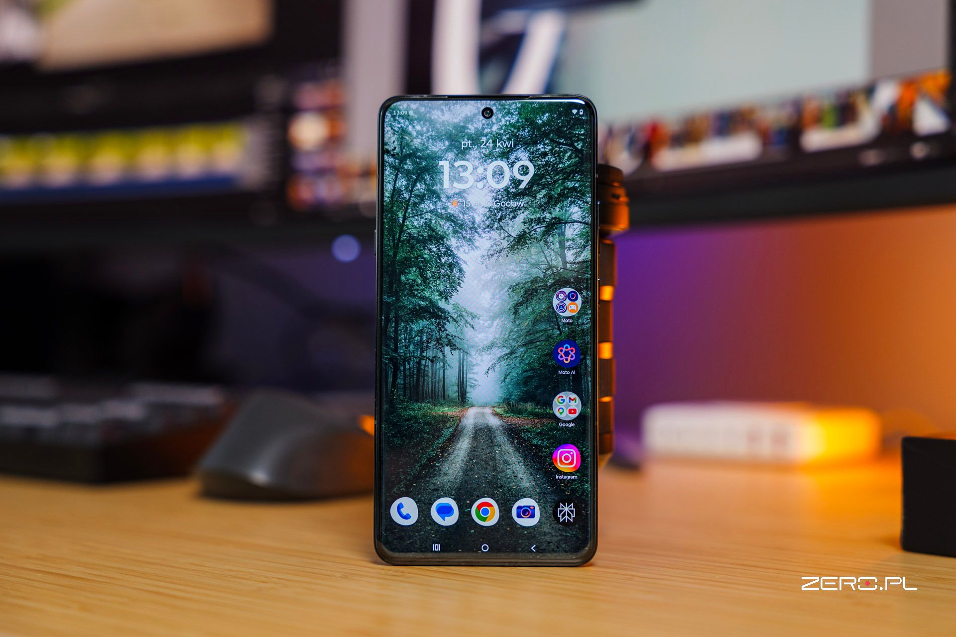 Motorola Signature ma ekran LTPO AMOLED o przekątnej 6,8 cala i rozdzielczości 1264 x 2780 pikseli. Oferuje 165 Hz odświeżanie obrazu, zgodność z Dolby Vision, a producent deklaruje jasność w piku na poziomie 6200 nitów. Co standardowo możemy włożyć między bajki, bo na co dzień jest to wartość nie do uzyskania. Niemniej zmierzona jasność w piku na poziomie ponad 1500 nitów w trybie automatycznym to bardzo dobry wynik. Wyświetlacz jest bardzo dobrze widoczny nawet w pełnym słońcu.
