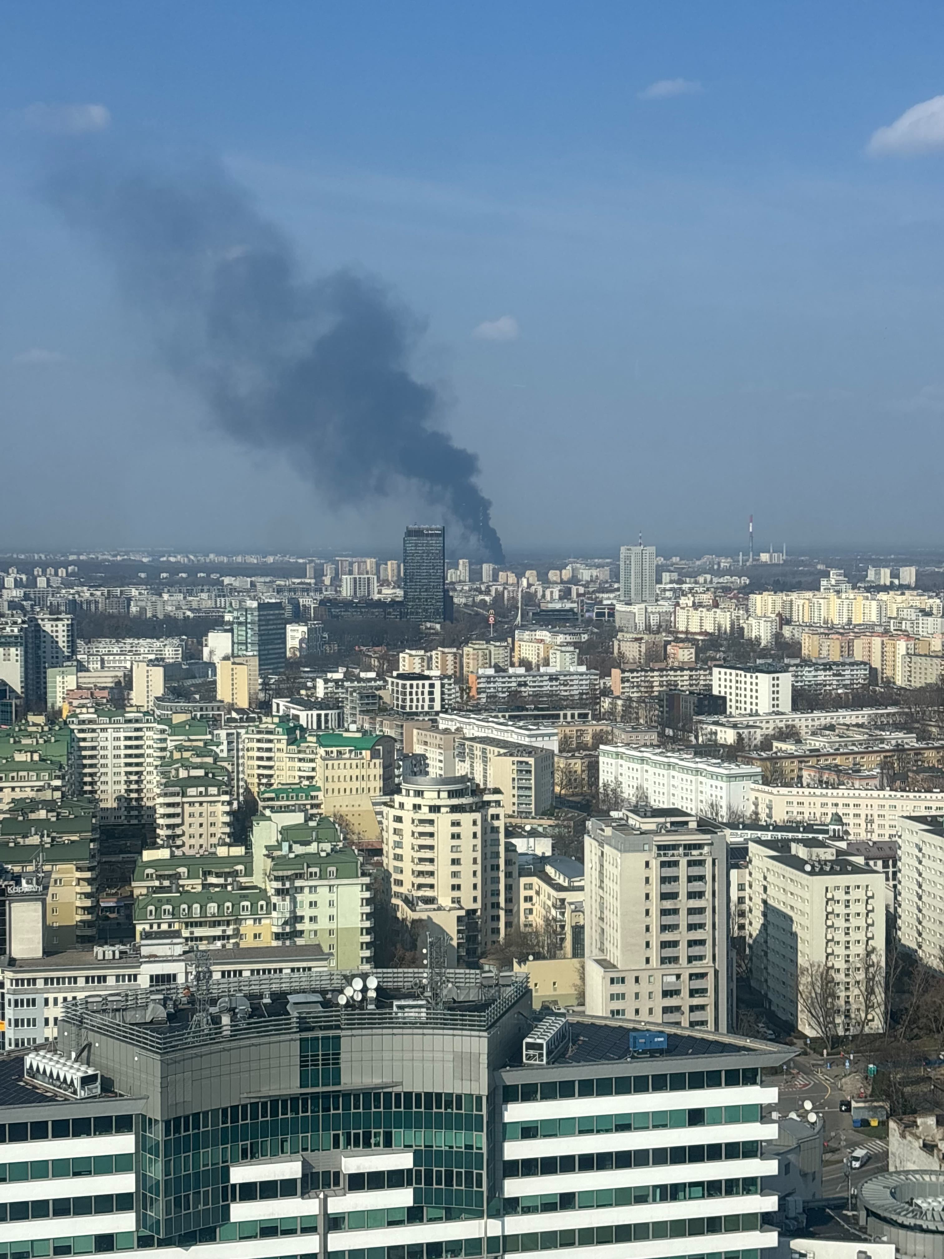 Na terenie budowy przy ul. Laurowej w Warszawie zapaliła się elewacja. Unoszący się nad pogorzeliskiem czarny dym widać z kilku kilometrów. Strażacy ewakuowali jedną osobę uwięzioną w dźwigu.