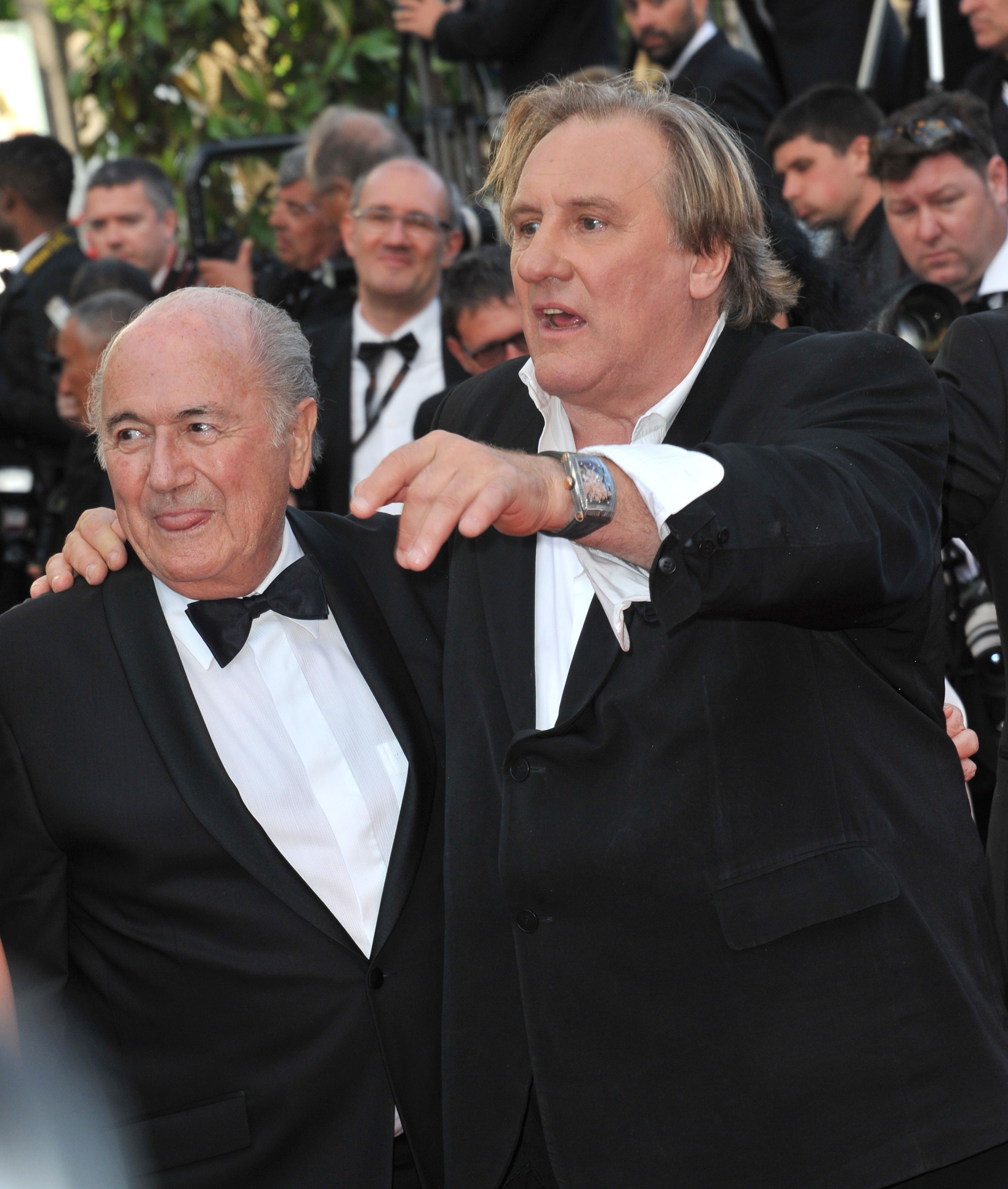 Prezydent FIFA Sepp Blatter i aktor Gerard Depardieu na festiwalu w Cannes, maj 2014 (fot. Jaguar PS / Shutterstock)