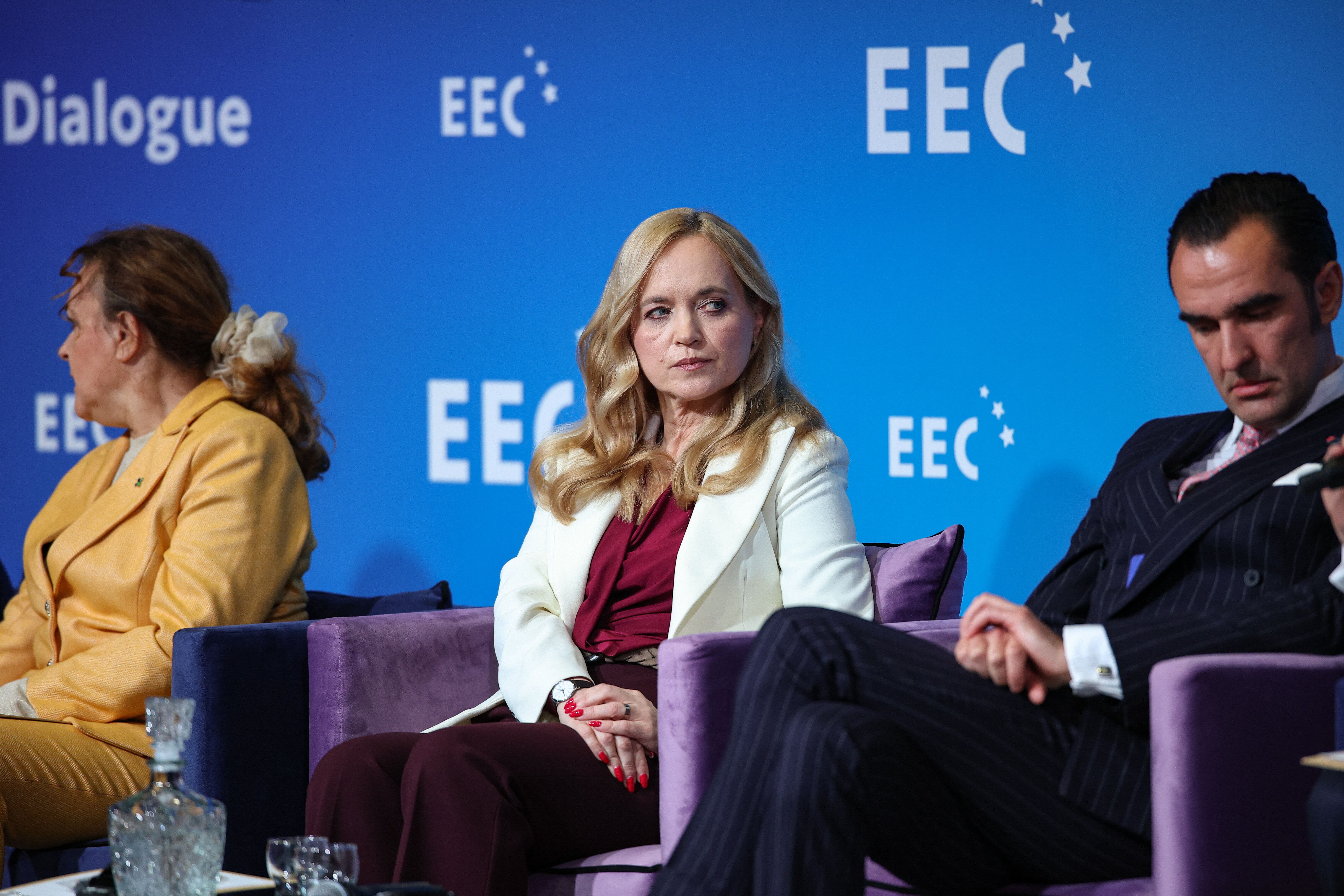 Katowice, 22.04.2026. Minister zdrowia Jolanta Sobierańska-Grenda (C) w dyskusji "Zdrowie-przyszłość systemu" w ramach Europejskiego Kongresu Gospodarczego w Katowicach, 22 bm. XVIII EKG odbywa się pod hasłem „The Power of Dialogue. Siła dialogu”. (amb) PAP/Łukasz Gągulski (fot. Łukasz Gągulski)