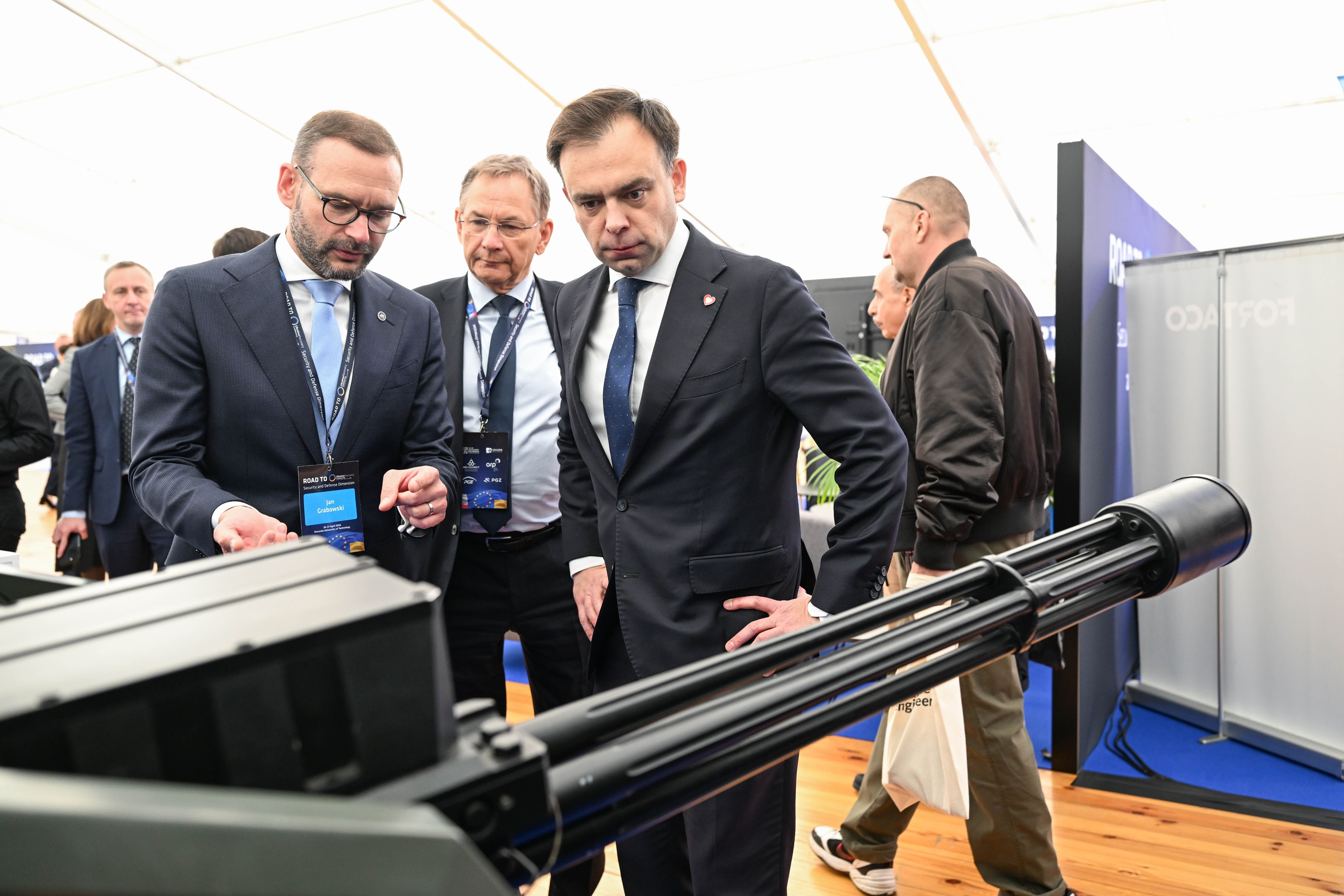 Rzeszów, 27.04.2026. Minister finansów Andrzej Domański (P) podczas drugiego dnia konferencji „Road to URC – Security and Defence Dimension” na Politechnice Rzeszowskiej, 27 bm. Odbywające się w dniach 26-27 kwietnia br. wydarzenie jest elementem przygotowań do międzynarodowej konferencji Ukraine Recovery Conference 2026 (URC 2026), która odbędzie się 25–26 czerwca w Gdańsku. (aldg) PAP/Darek Delmanowicz (fot. Darek Delmanowicz / PAP)