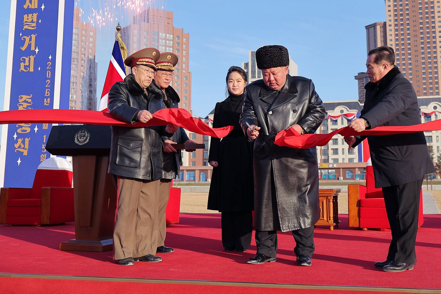 Fotografie mediów państwowych Korei Płn. upamiętniające otwarcie nowego osiedla, przedstawiają Kim Dzong Una w towarzystwie swojej 13-letniej córki Dzu Ae, którą w ostatnim czasie przywódca intensywnie promuje.